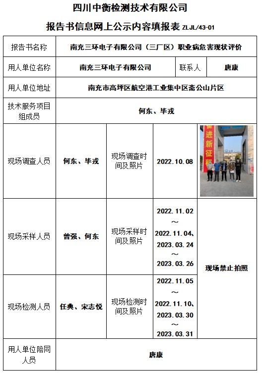 南充三環電子有限公司(三廠區)職業病危害現狀評價