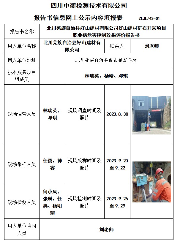 北川羌族自治縣好山建材有限公司好山建材礦石開采項目 職業病危害控制效果評價報告書