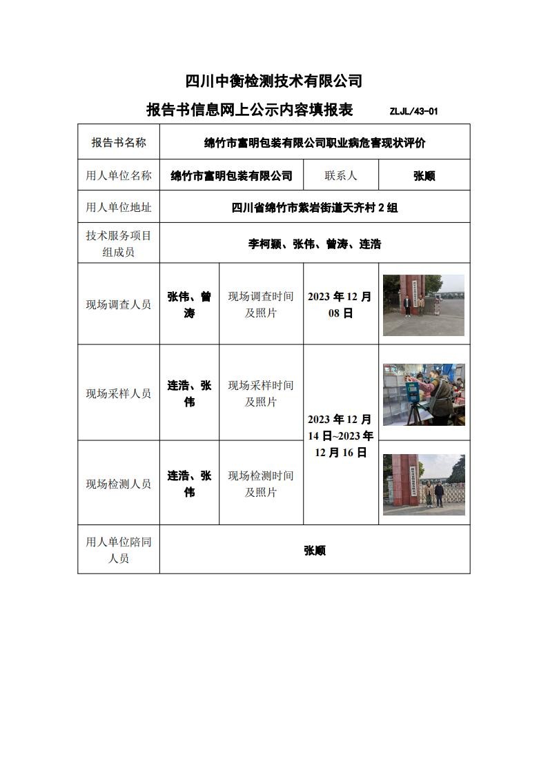 綿竹市富明包裝有限公司職業(yè)病危害現(xiàn)狀評(píng)價(jià)