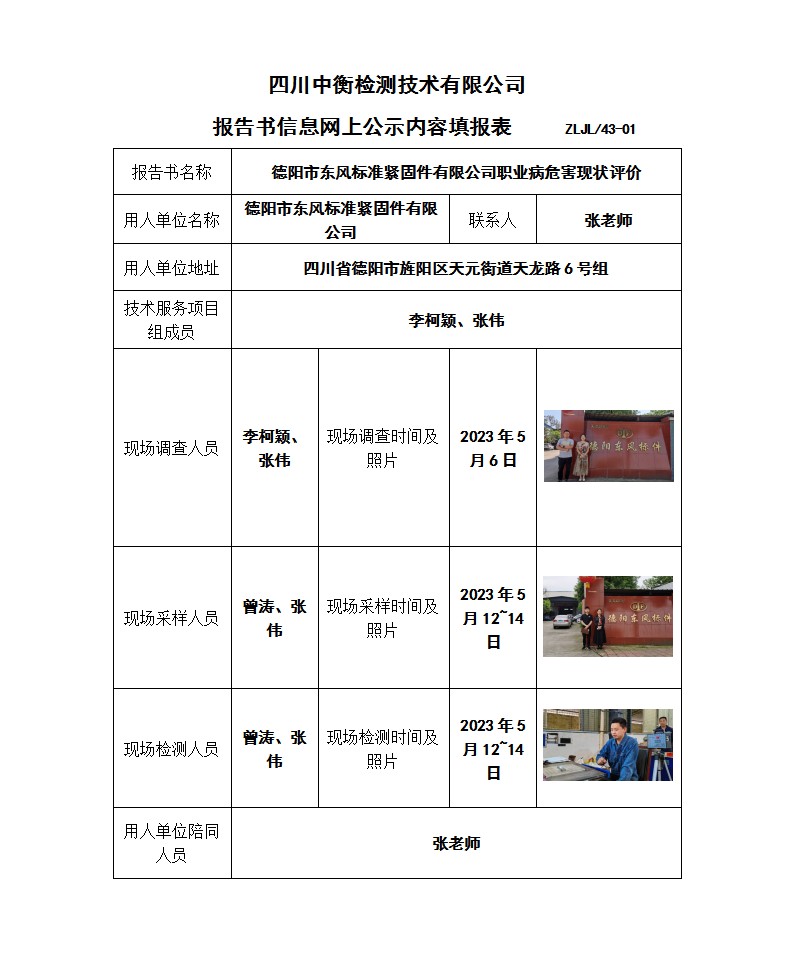 德陽市東風(fēng)標(biāo)準(zhǔn)緊固件有限公司職業(yè)病危害現(xiàn)狀評(píng)價(jià)