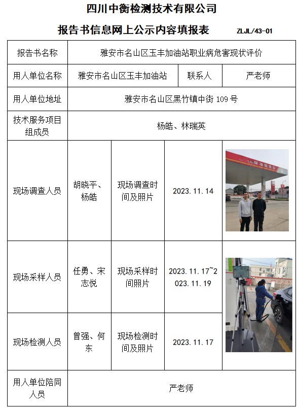 雅安市名山區玉豐加油站職業病危害現狀評價