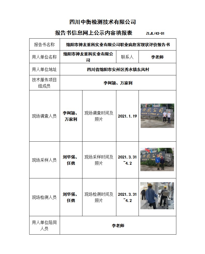綿陽市神龍重科實業有限公司職業病危害現狀評價