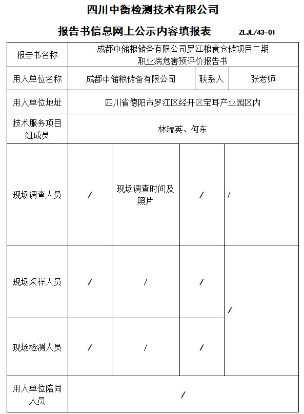 成都中儲糧儲備有限公司羅江糧食倉儲項目二期 職業病危害預評價報告書