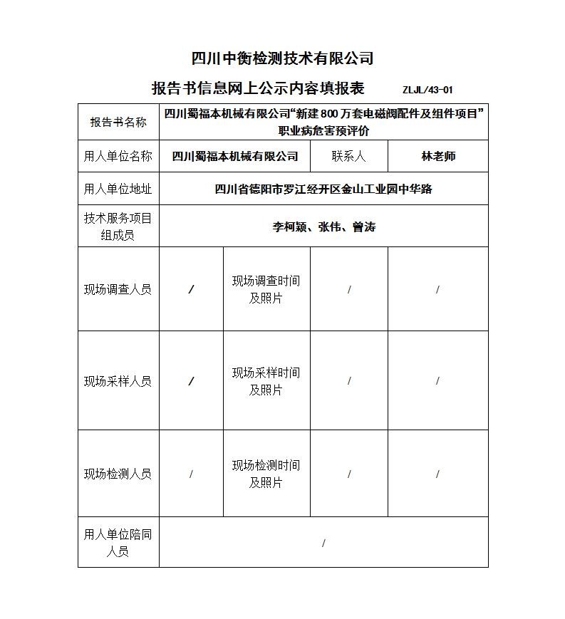 四川蜀福本機(jī)械有限公司“新建800萬套電磁閥配件及組件項(xiàng)目”職業(yè)病危害預(yù)評價(jià)