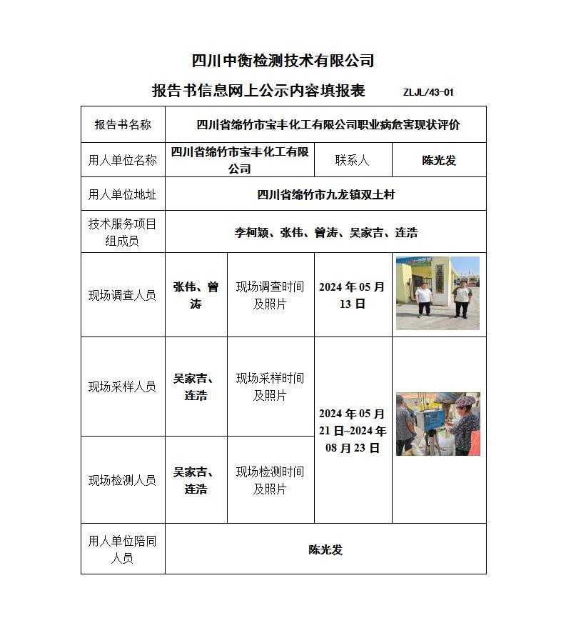 四川省綿竹市寶豐化工有限公司職業(yè)病危害現(xiàn)狀評(píng)價(jià)