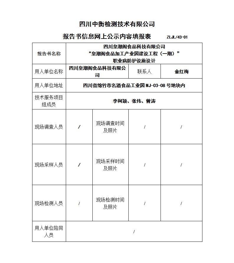 四川皇潮閣食品科技有限公司“皇潮閣食品加工產業園建設工程(一期)”職業病防護設施設計