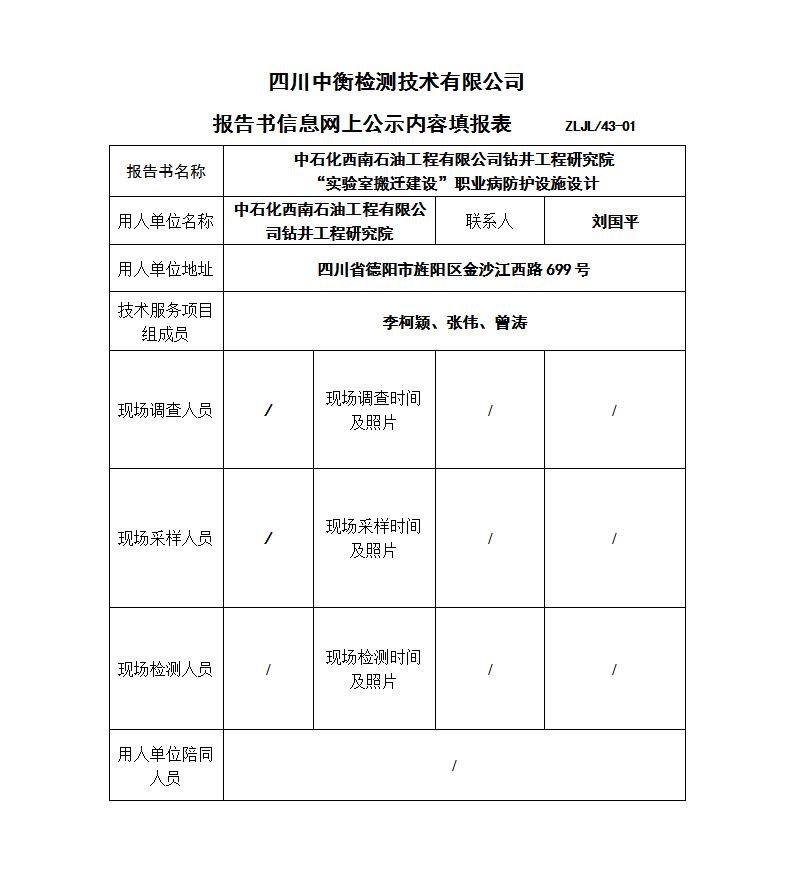 中石化西南石油工程有限公司鉆井工程研究院“實(shí)驗(yàn)室搬遷建設(shè)”職業(yè)病防護(hù)設(shè)施設(shè)計(jì)