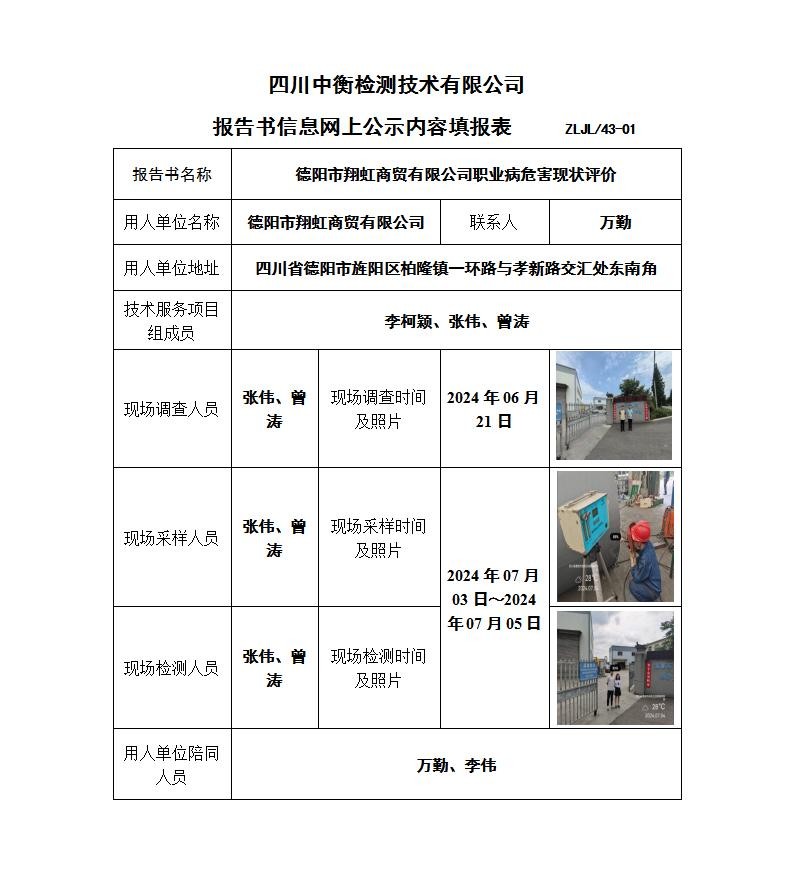 德陽市翔虹商貿有限公司職業病危害現狀評價