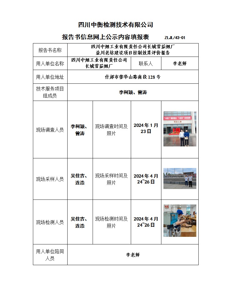 四川中煙工業有限責任公司長城雪茄煙廠 益川老坊建設項目 職業病危害控制效果評價報告書