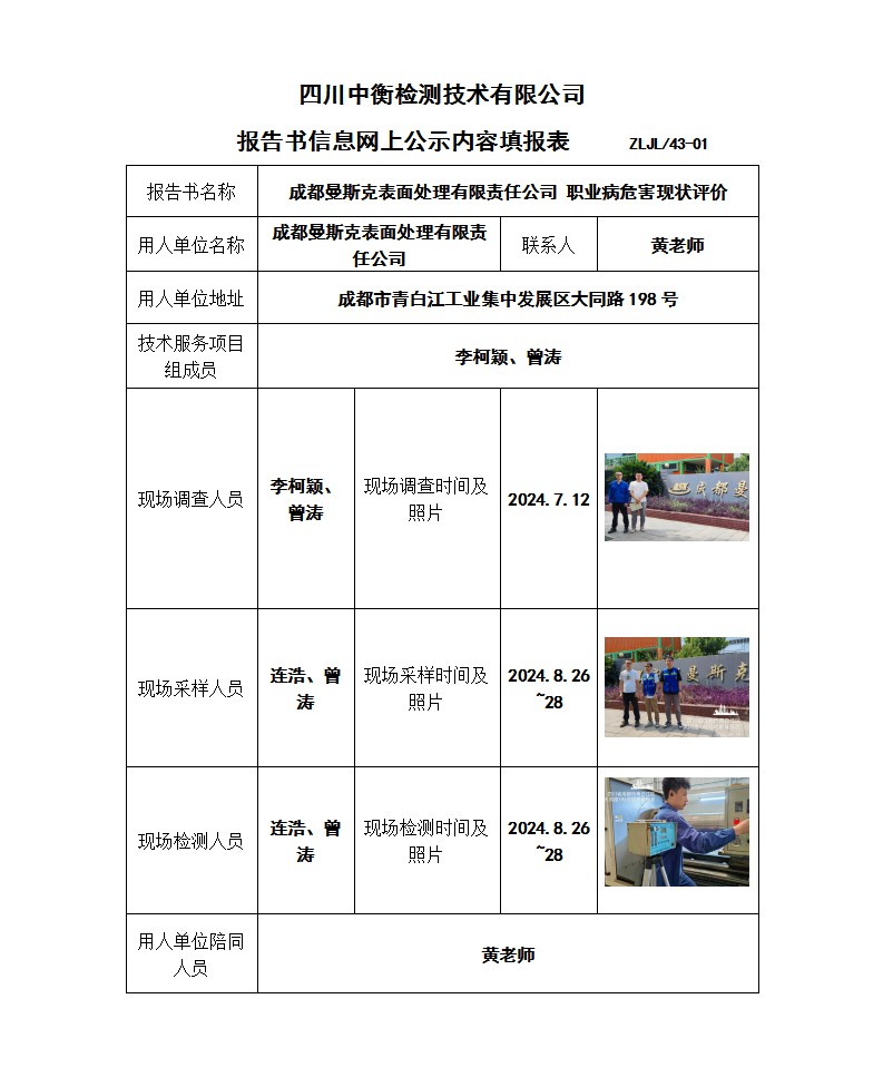 成都曼斯克表面處理有限責(zé)任公司 職業(yè)病危害現(xiàn)狀評(píng)價(jià)報(bào)告書