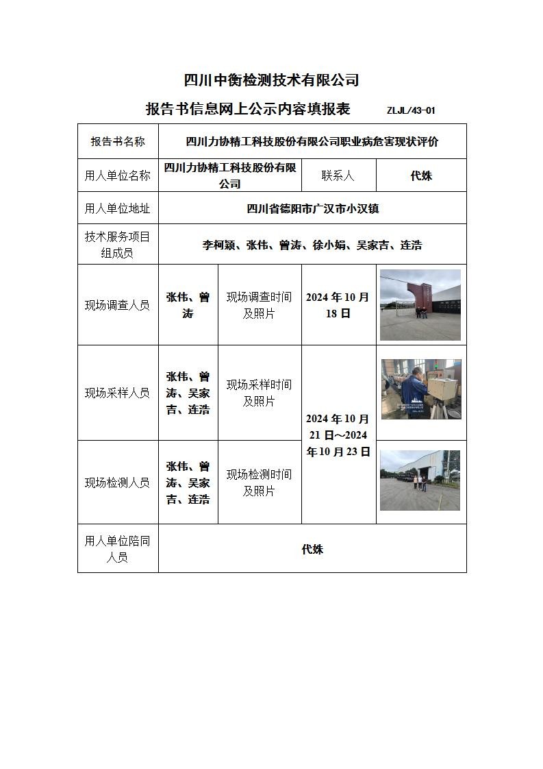 四川力協(xié)精工科技股份有限公司職業(yè)病危害現(xiàn)狀評(píng)價(jià)