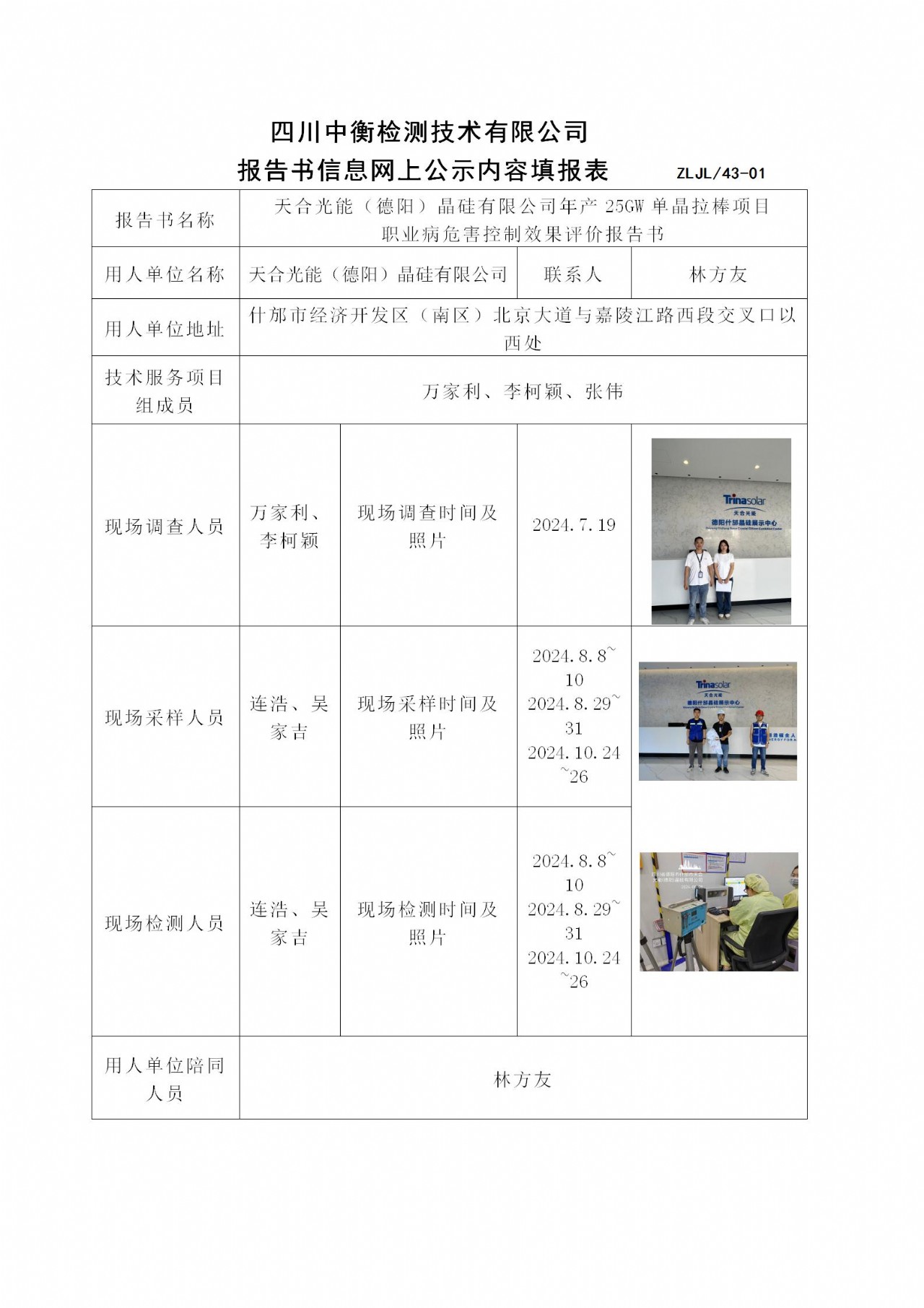 天合光能(德陽)晶硅有限公司年產25GW單晶拉棒項目 職業病危害控制效果評價