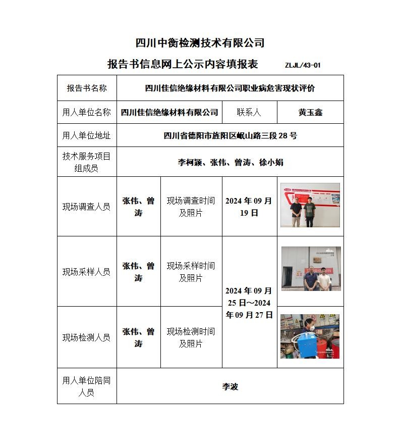 四川佳信絕緣材料有限公司職業病危害現狀評價