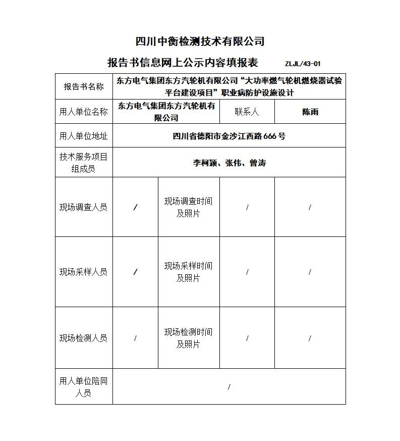 東方電氣集團東方汽輪機有限公司“大功率燃氣輪機燃燒器試驗平臺建設(shè)項目” 職業(yè)病防護設(shè)施設(shè)計