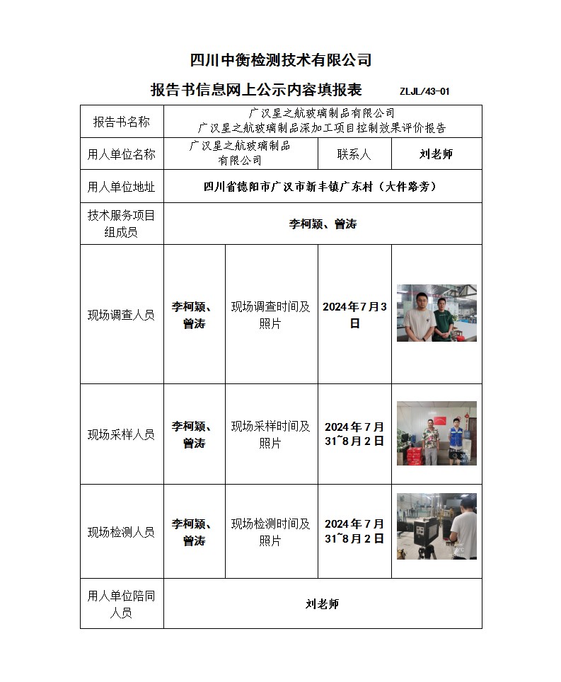 廣漢星之航玻璃制品有限公司 廣漢星之航玻璃制品深加工項目 職業(yè)病危害控制效果評價