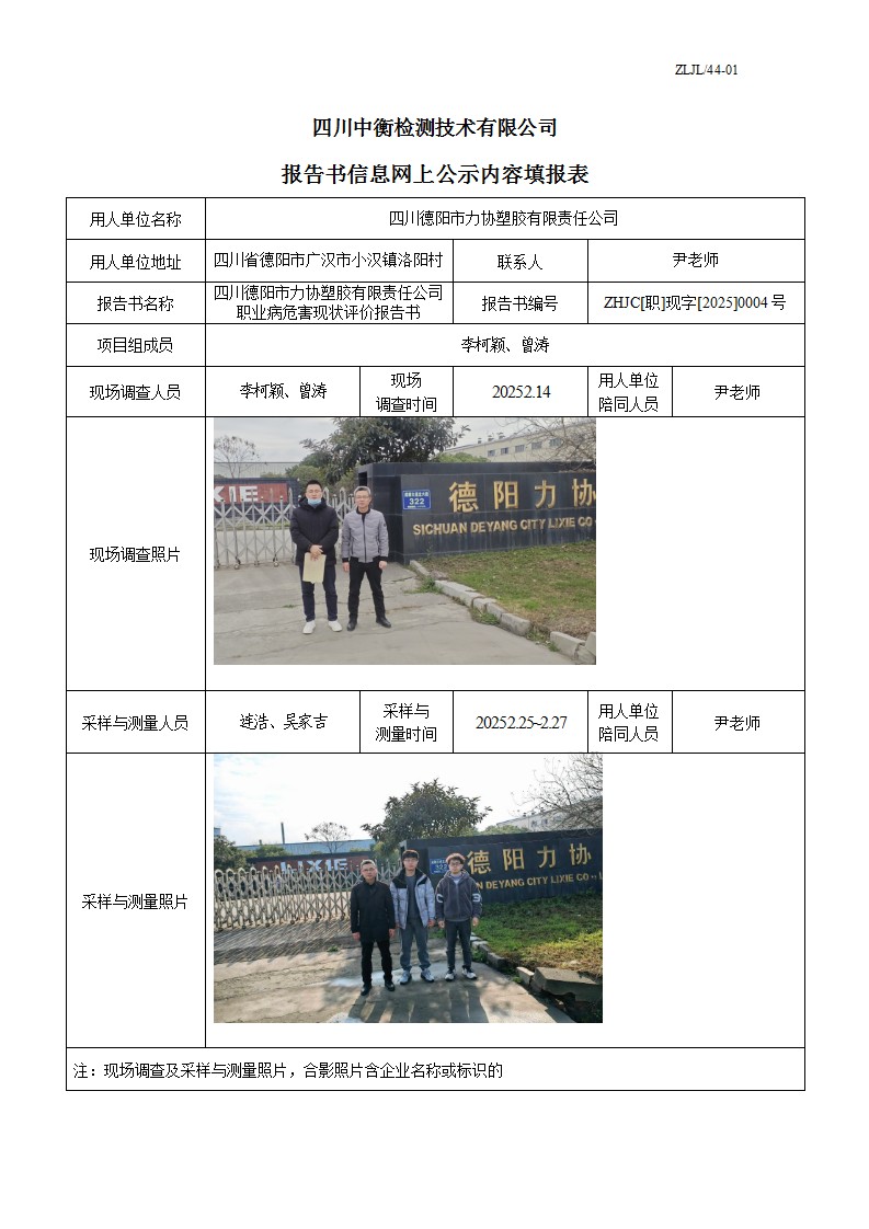 四川德陽市力協(xié)塑膠有限責任公司 職業(yè)病危害現(xiàn)狀評價報告書