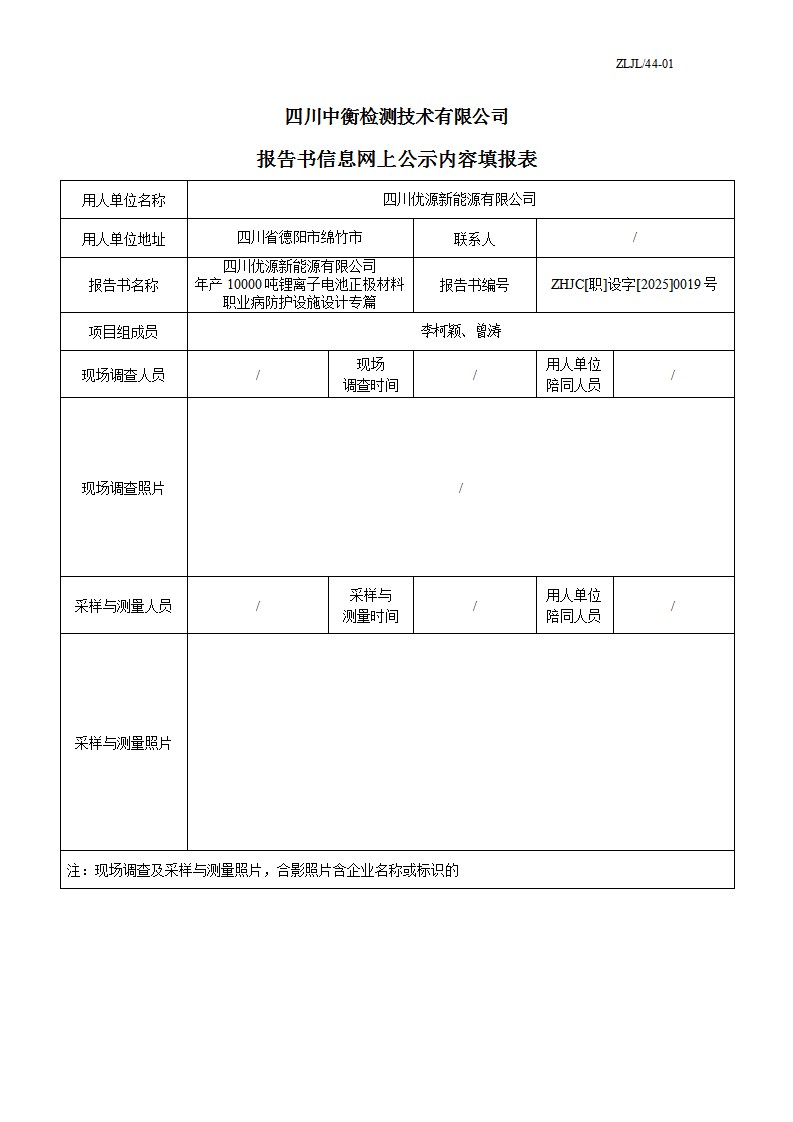 四川優源新能源有限公司 年產10000噸鋰離子電池正極材料 職業病防護設施設計專篇